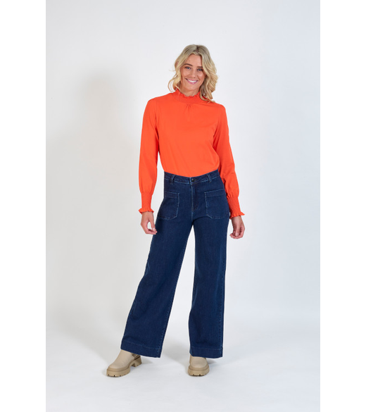 • Wide leg full length pant • Made from stretch fabric for the perfect fit • Waistband features metal 'KNEWE' logo jean button closure, 2 front beltloops and 3 back beltloops • Zip fly • Front patch pockets • Back patch pockets • Leather 'KNEWE' brand patch on wearers back right-hand side waistband.