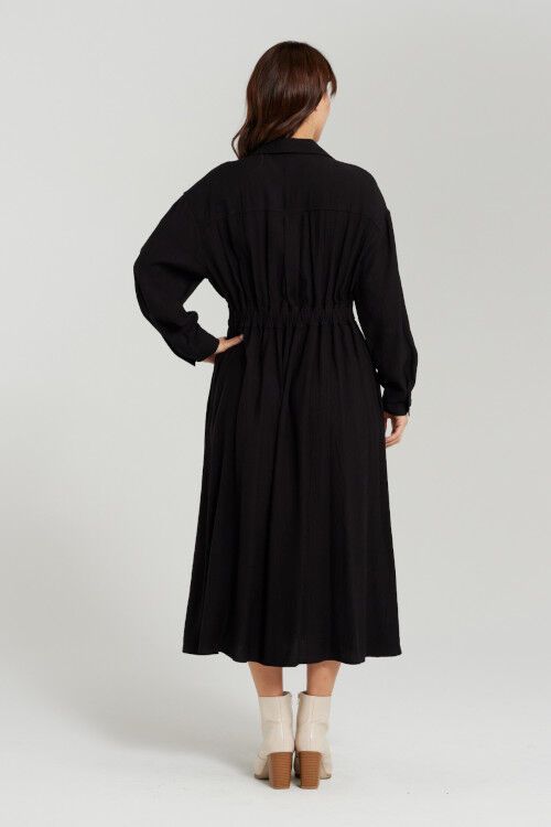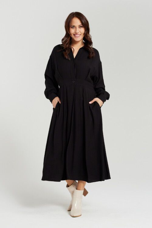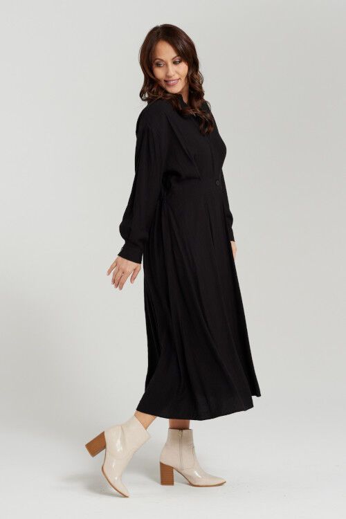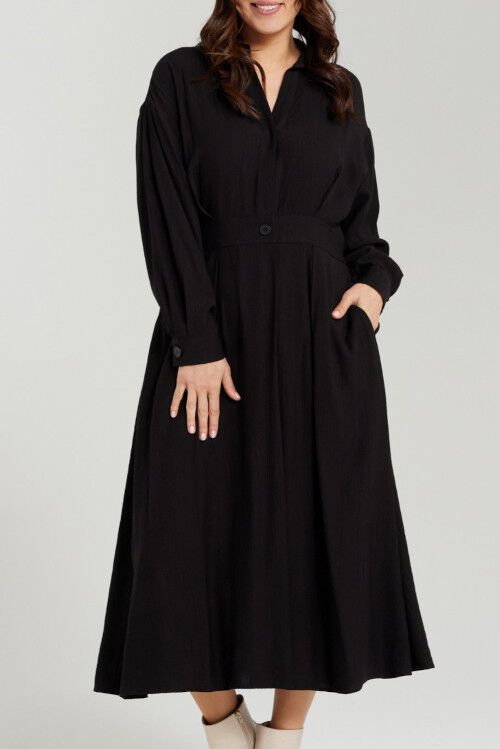This versatile black shirt dress is featuring long sleeves for added style and coverage. Perfect for both work and leisure, you'll love its simple yet stylish look. 50% polyester, 50% viscose