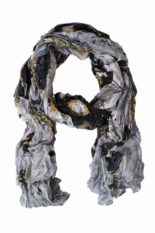 Simply Art by Dolcezza Scarf “I am Taking You Home Tonight” – rectangular scarf featuring design of Vigo (Quebec, Canada) painting, light soft fabric, slightly crinkled. Presented in a gift box. Measurements (approx.): 165cm x 75cm . Viscose
