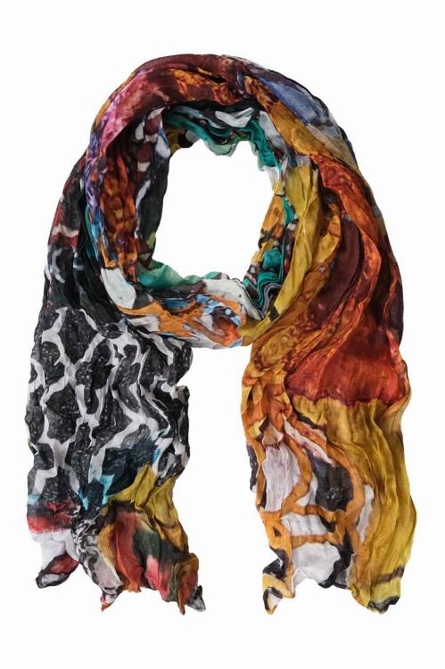 Simply Art by Dolcezza Scarf “Aviary” – rectangular scarf featuring design of Janet O'Neal (Ontario, Canada) painting, light soft fabric, slightly crinkled. Presented in a gift box. Measurements (approx.): 165cm x 75cm . Viscose