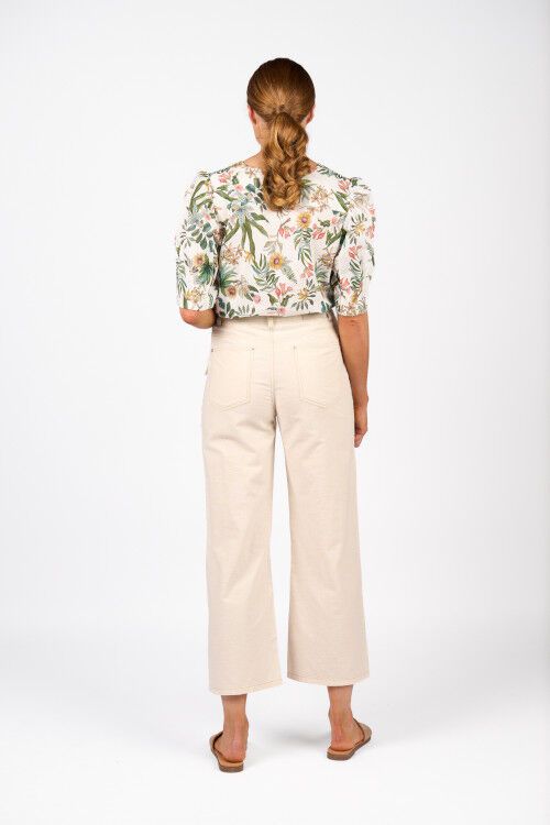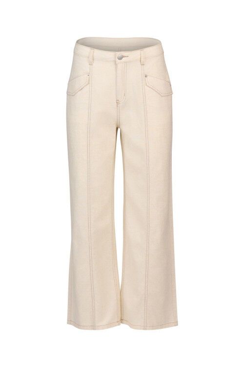 The Shade Pant in Natural is made from a breathable cotton-linen blend with contrast tan stitching throughout. A centre front seam runs cleanly down each leg, and flap patch pockets add a utility-inspired touch. The wide leg, ankle-grazing cut is finished with a zip fly and belt loops for a polished yet relaxed look.  85% cotton, 15% linen