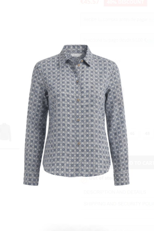 Lightweight silky shirt with button front, collar and long sleeves with button cuffs. Slightly curved hemline. Designed and manufactured in Spain. 100% viscose