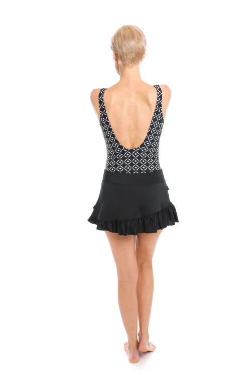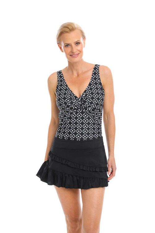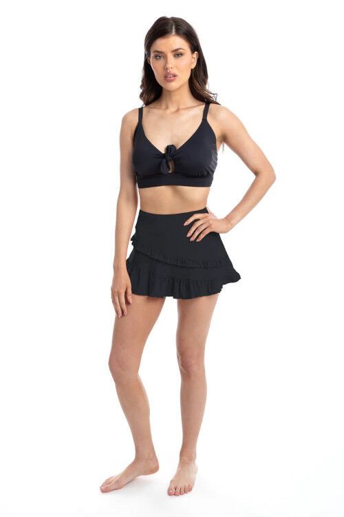 A swim skort with flattering frill detail. Features built-in boyleg pant. Nylon/spandex