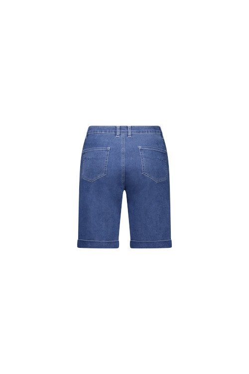 Denim shorts with zip and button fly, slant pockets on the front, jean style pockets on the back and small turn-up cuffs. Comfortable stretch denim. 97% cotton, 3% elastane