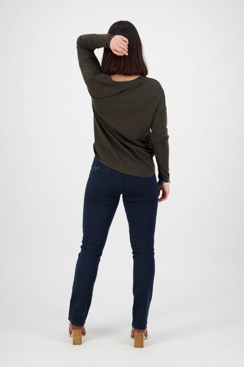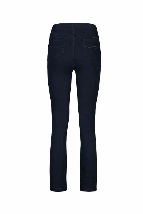 These are favourites at Gaby's. A comfortable pull on pant that sits nice and flat around the waist and tum but looks like a conventional jean when worn with a tee or knitwear. Slim fitting leg that is straight, not tapered. Pockets on the back. 97% cotton, 3% elastane