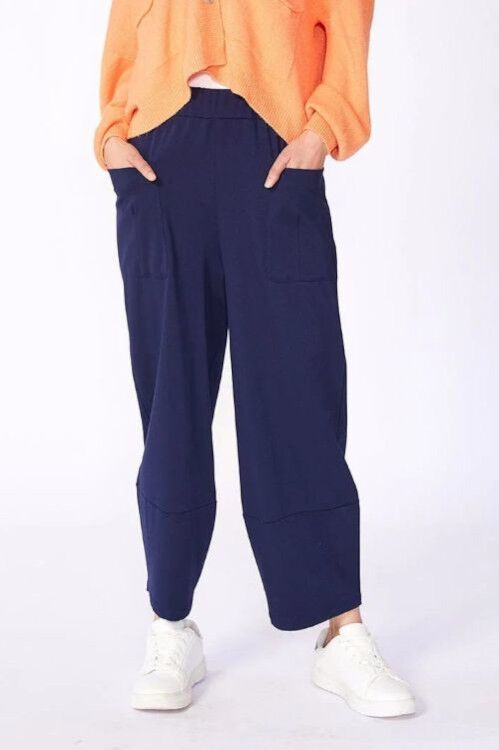 Slouch trouser with elasticated waistband and front pockets. Peruzzi is an Irish designed brand, made with Italian craftmanship and fabrics. 68% viscose, 27% polyamide, 5% elastane