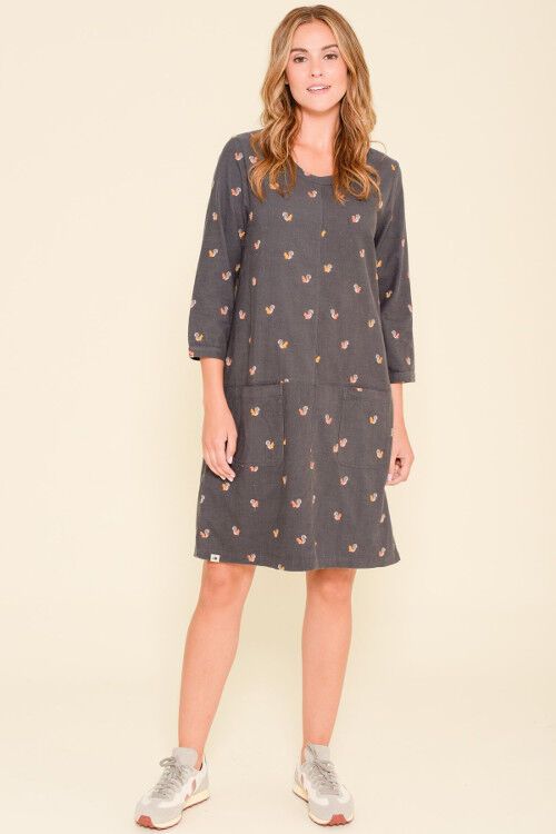 Made from supersoft cotton cord, this dress is practical, stylish and versatile. In a relaxed, comfortabke fit, the cute autumn squirrel print will add a touch of fun to your wardrobe. Designed in Dorset, UK. Outer: 100% cotton; lining: 100% cotton
