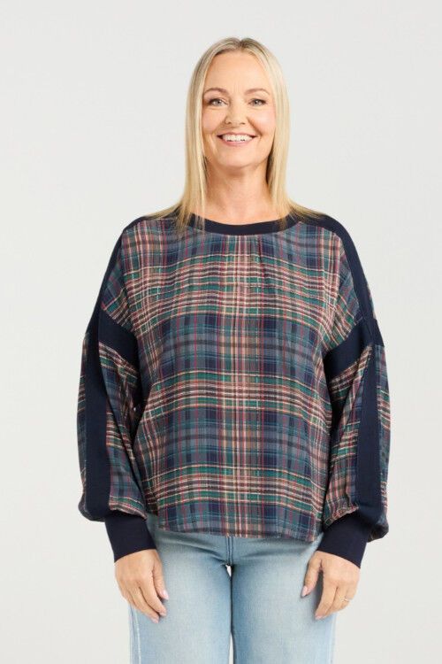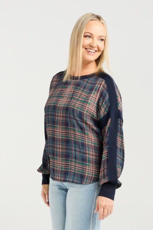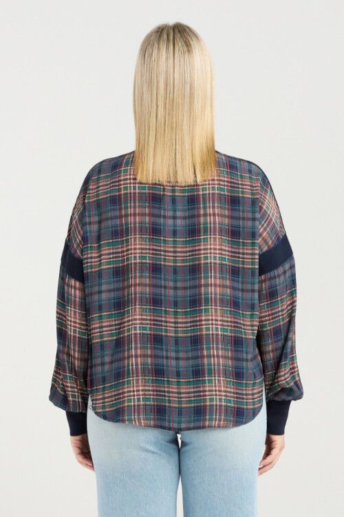 This long-sleeve top features wide elasticated cuffs and subtle panelling on the sleeves in classic plaid fabric. A timeless design with modern detailing, it adds understated elegance to any outfit. 50% viscose, 50% rayon