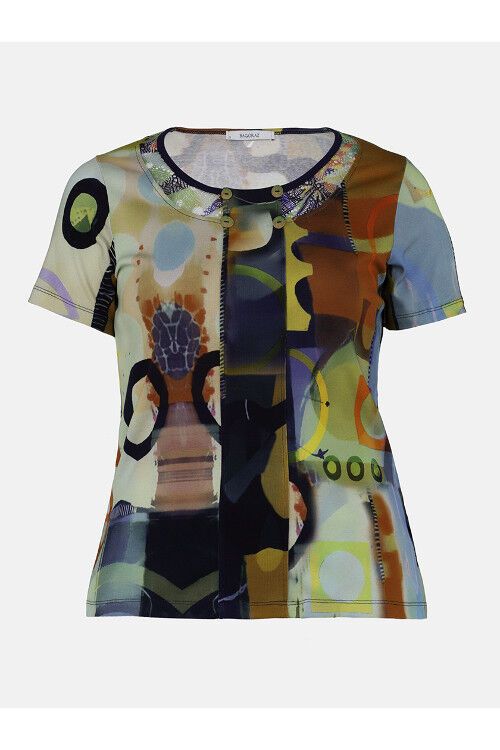 Top with round neck and short sleeves featuring subtle lace and button detail. Styled and made in Portugal. 100% cotton