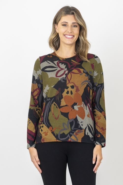 Cosy print top that can be worn with the snood for a cowl neck effect or without it as a round neck top. Polyester/spandex