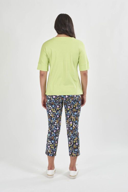 Longer than the V neck top (4264) and A line shape for relaxed fit at the hips. The sleeve is als more relaxed than the set-in sleeve of the V neck top. Short cuffed sleeves. 96% cotton, 4% elastane