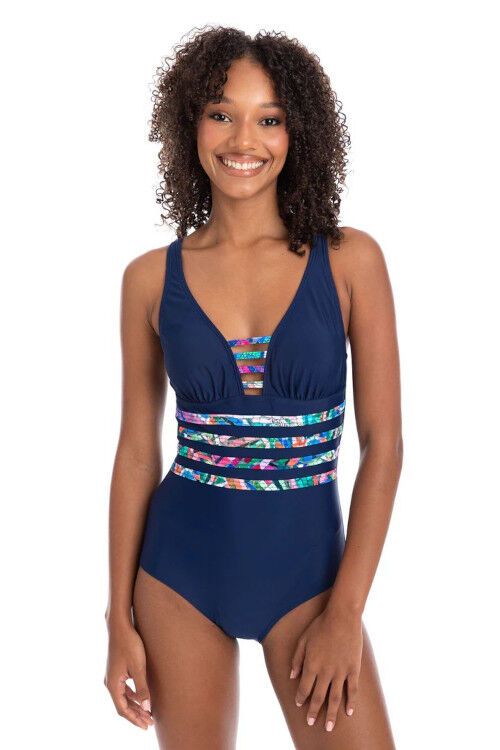 A trending one piece favourite, the V Neck Binding offers a deeper V neckline that is supported with contrast binding across the bust. Featuring V neckline with binding support, adjustable straps, power mesh tummy control and full lining. Nylon/elastane