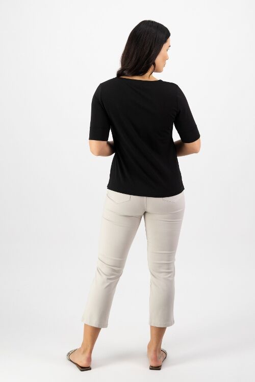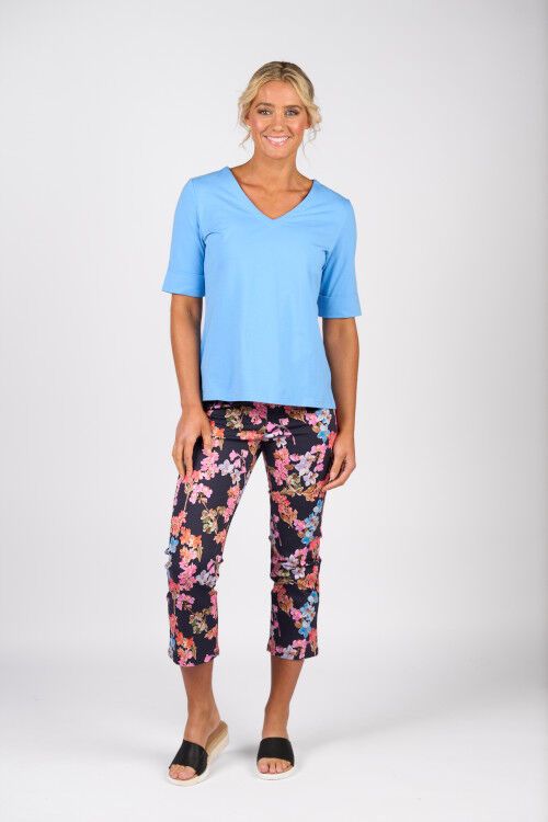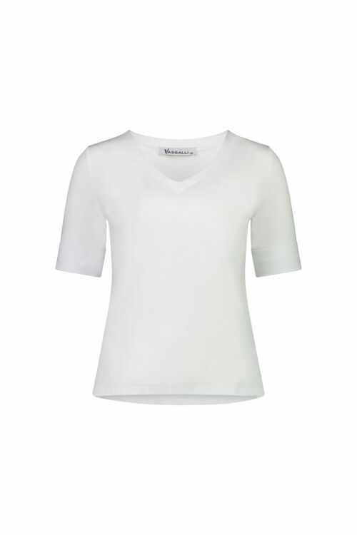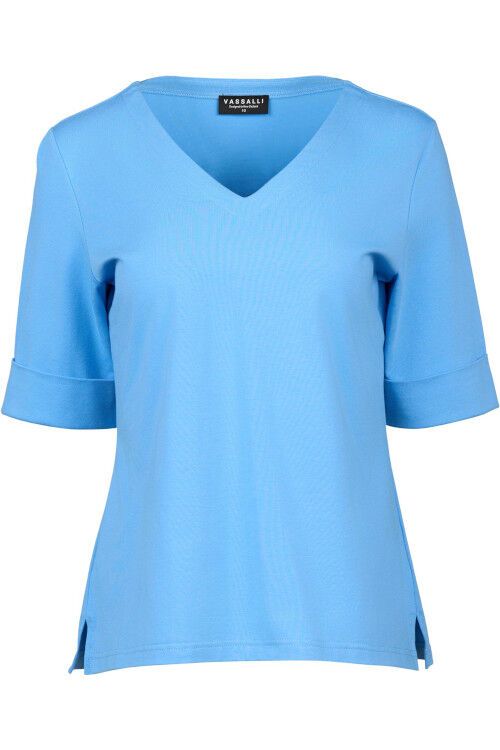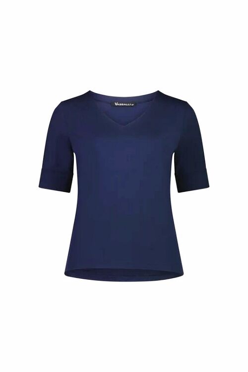 This has always been a popular Vassalli tee for those who love a V neck. It has an excellent length sleeve with a wide cuff which makes it a bit smarter than a cheapie tee. 95% cotton, 5% elastane
