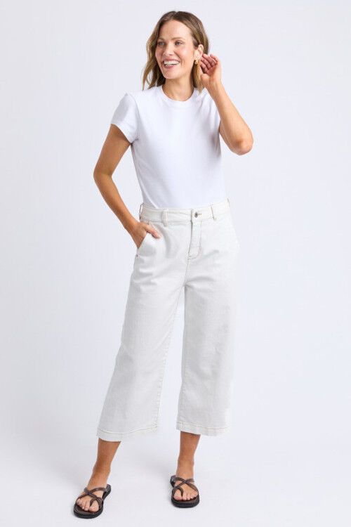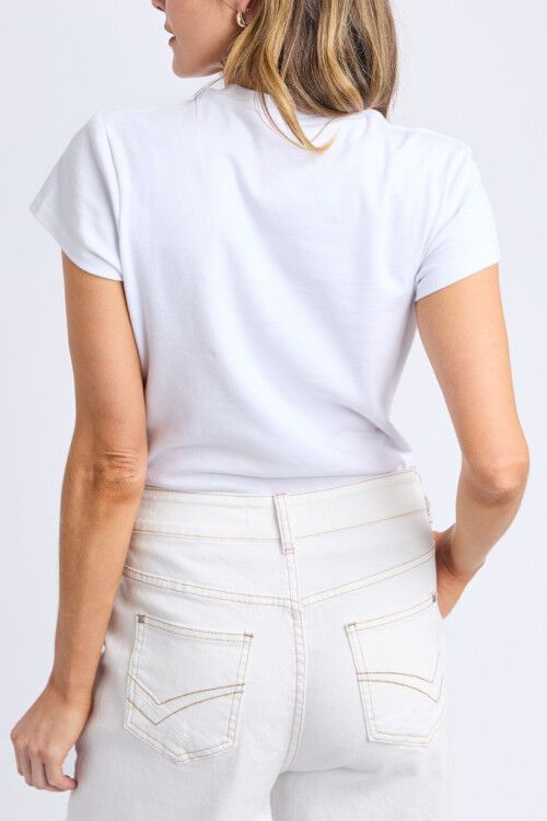 A fitted tee that's great for layering or wearing tucked into your favourite bottoms. Fitted shape and cropped length, ideal for wearing with skirts, shorts or wide leg pants.  96% cotton, 4% elastane 1 x 1 rib knit