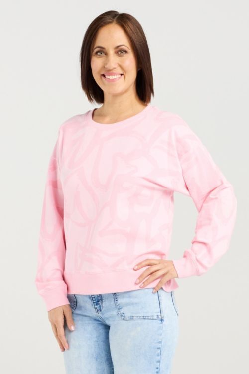 This long-sleeve jumper features a subtle painted hearts print for a gentle, playful touch. Its classic silhouette keeps the look effortless and versatile. A charming piece to brighten your winter wardrobe. 95% cotton, 5% spandex