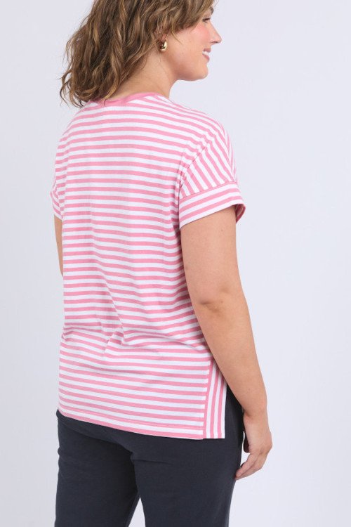Step into effortless style with the Yara Stripe Tee designed to move with you. Every wardrobe deserves a little fun – and this brings it. Hi-lo hem and side splits. Cotton jersey